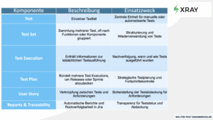 Diese Elemente greifen ineinander und bilden ein strukturiertes Testmanagement direkt im Jira-Ökosystem.